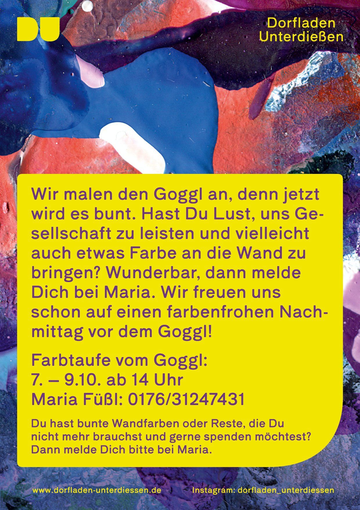Nein, es gibt (noch) keine satten Rabatte im Dorfladen. Bis dahin ist es noch ein langer Weg. Jetzt wird erstmal in die Hände gespuckt. Die Vorbereitungen für den Dorfladentag am 15. Oktober laufen auf Hochtouren. Gemeinsam mit Euch putzen wir den Goggl heraus und bereiten alles vor für den großen Tag. Schau doch mal weiter unten, ob eine der Aktionen was für Dich wäre. Melde Dich einfach bei den jeweiligen Ansprechpartner*innen.